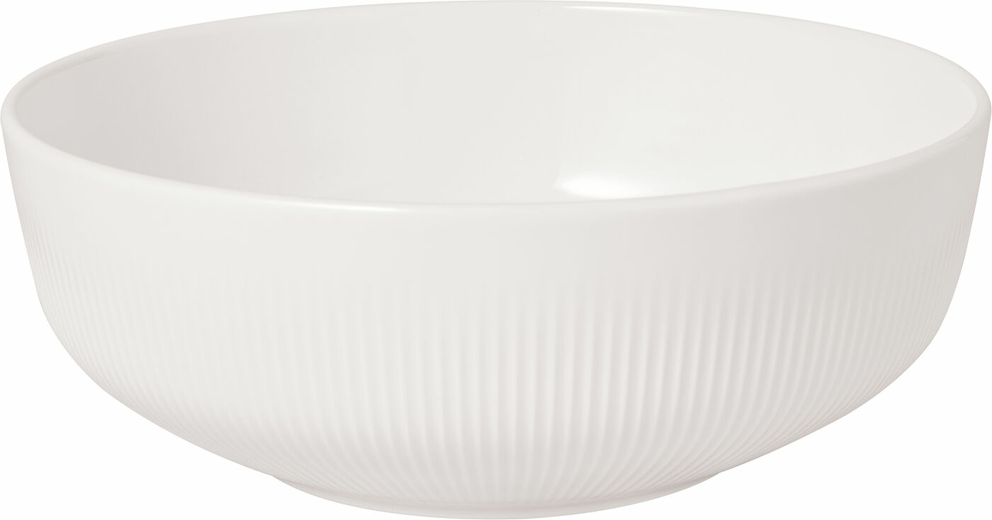 En serie i vitt porslin med en minimalistisk form och noggrant utformade detaljer för en sofistikerad och elegant touch.