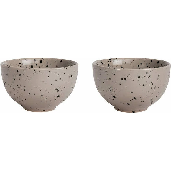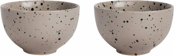 En mellan skål för snacks eller frukostflingor. Kulören går i en beige/grå ton med ett fint stänkmönster i svart. Denna skål har bara mönster på utsidan för att skapa harmoni och karaktär mellan seriens olika delar. Tillverkad i stengods. Är även fin att kombinera med Coffee & More serien. Säljs i 2-pack. Ditte är handgjord. Färg och yta kan därför variera från en produkt till en annan. Varje produkt är unik i sitt slag.