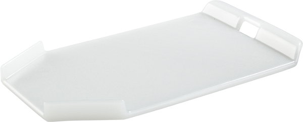 Praktisk skärbräda i Polyetenplast. Formen på brädan gör det enkelt att skära upp maten och sedan skyffla av det uppskurna direkt i kastrullen eller bunken. Livsmedelsgodkänd, klarar maskindisk.