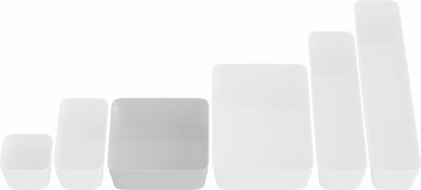 Organisera dina lådor och skåp genom att kombinera de 6 olika storlekarna i vår serie Store It® Flexible.
