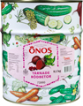 Skivad gurka med SENAPsfrö i lag av vatten, socker, ättika, salt, stabiliseringsmedel (kalciumklorid), naturlig dillarom, kryddextrakt (bl.a. cayennepeppar), arom. Kan innehålla spår av GLUTEN.
