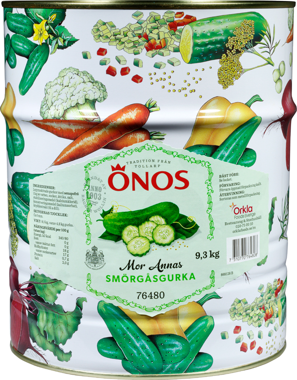 Mor Annas Smörgåsgurka® plockas hos våra IP-certifierade kontraktsodlare i Skåne, Blekinge, Småland och på Öland och läggs in under 10 intensiva sommarveckor. En varsam hantering och våra gammeldags, klassiska recept borgar för fantastiska gurkprodukter. Packade i Bisfenol A-fria, stapelbara, koniska burkar. 9,3 kg (avrunnen vikt 4,8 kg).