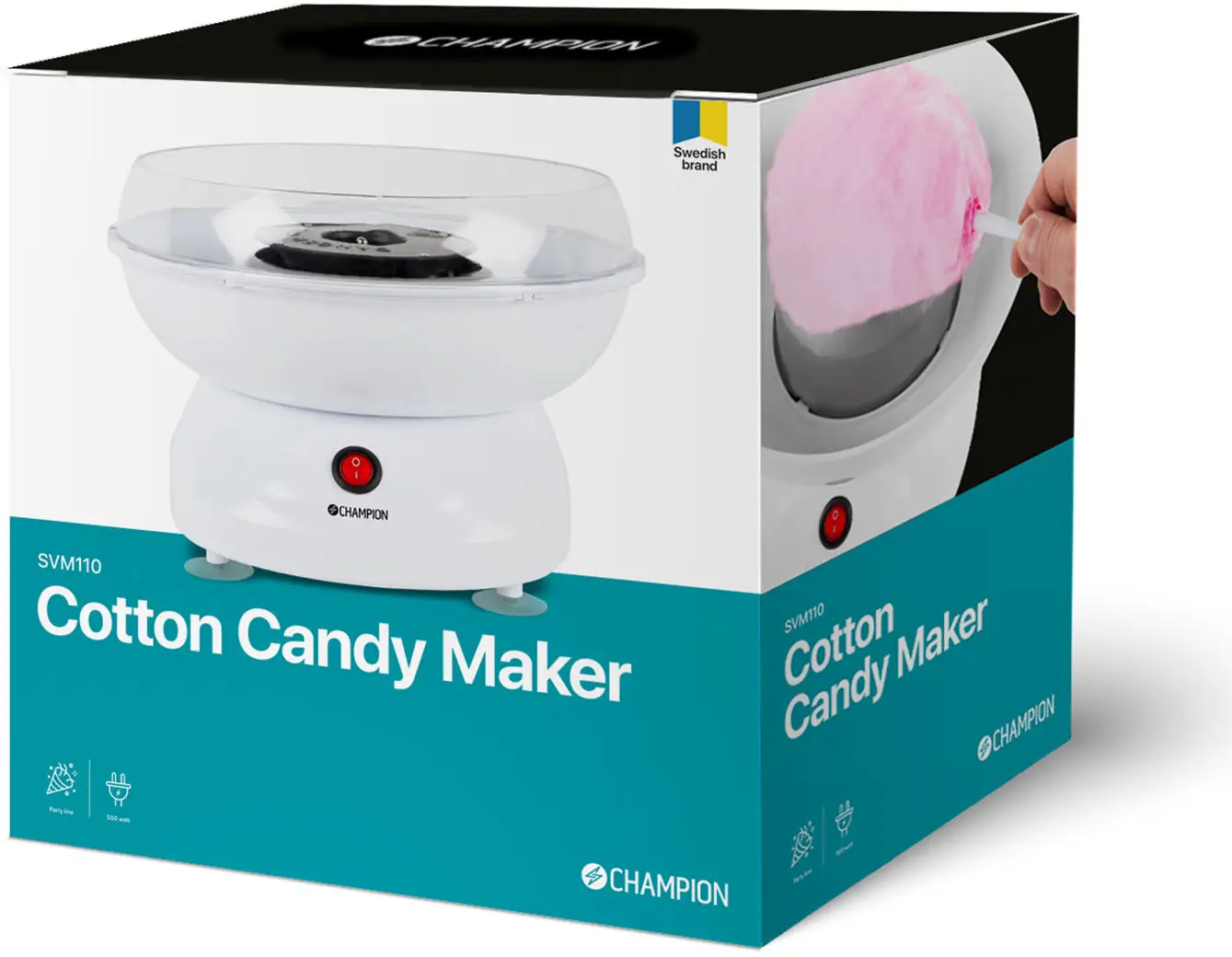 Champions sockervaddmaskin är för dig som älskar kalas med extra allt. Värm upp maskinen, tillsätt socker och du har hemmagjord fluffig sockervadd. Fånga upp sockervadden ur skålen med en strut eller pinne och du är kalasets hjälte. Champions sockervaddmaskin är liten, smidig och enkel att rengöra tack vare den avtagbara skålen.