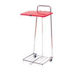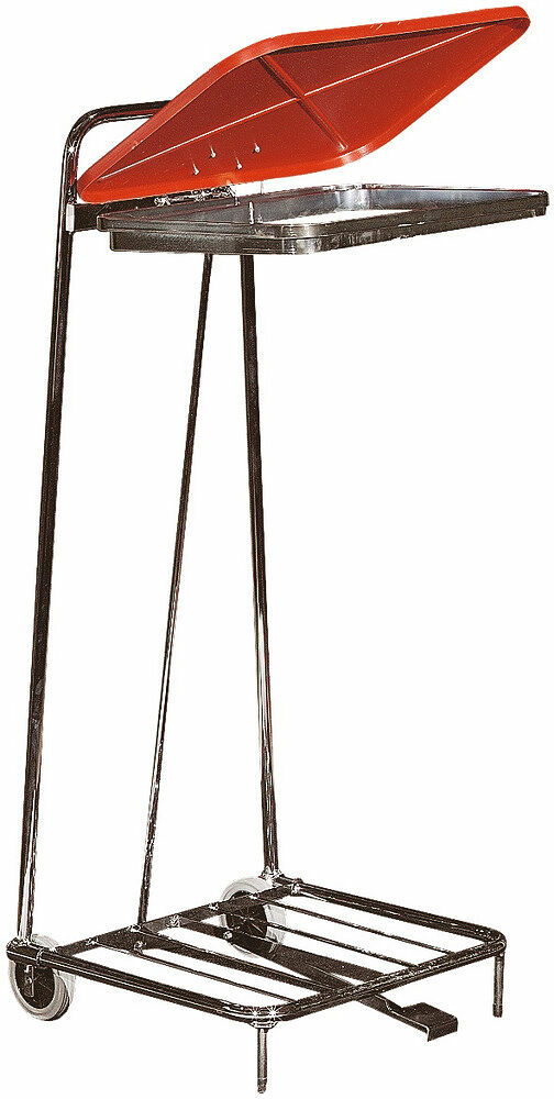 Förkromat stativ med rött alternativ vitt plastlock och fotpedal. För inomhusbruk. Längd: 390 mm Bredd: 410 mm Höjd: 920 mm