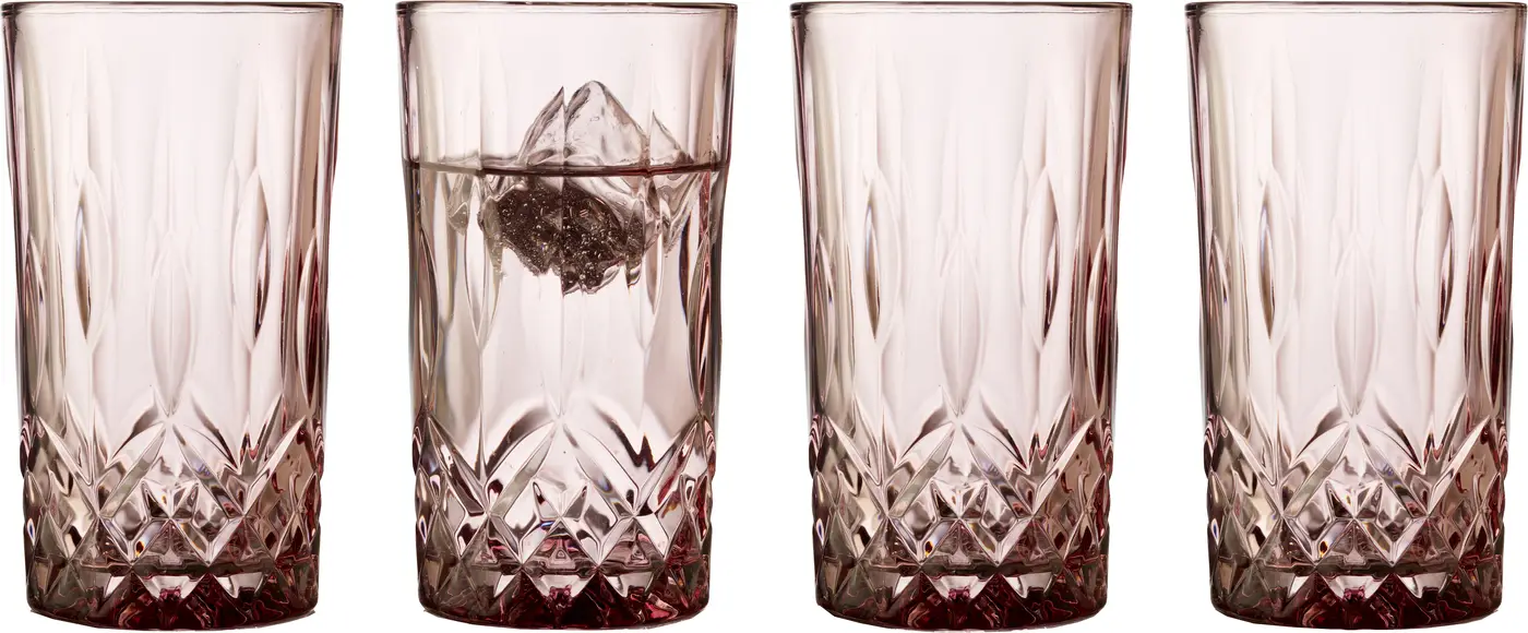 Setet innehåller 4 stiliga highballglas som kombinerar funktionalitet med en tidlös estetik. Låt varje fest eller vardagsstund bli en fest med Highballglas Sorrento!