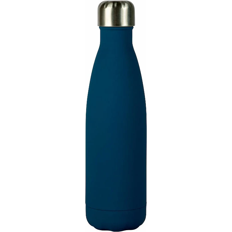 Sagaforms omåttligt populära stålflaska, nu med trendig matt gummiyta. Flaskan är dubbelväggig med kopparhölje så den håller dryck iskall i 24 timmar och varm i 12 timmar. Satsa på en vattenflaska av hållbar kvalité för både dig och miljön! Flaskan rymmer 50 cl. Nu även i blått.