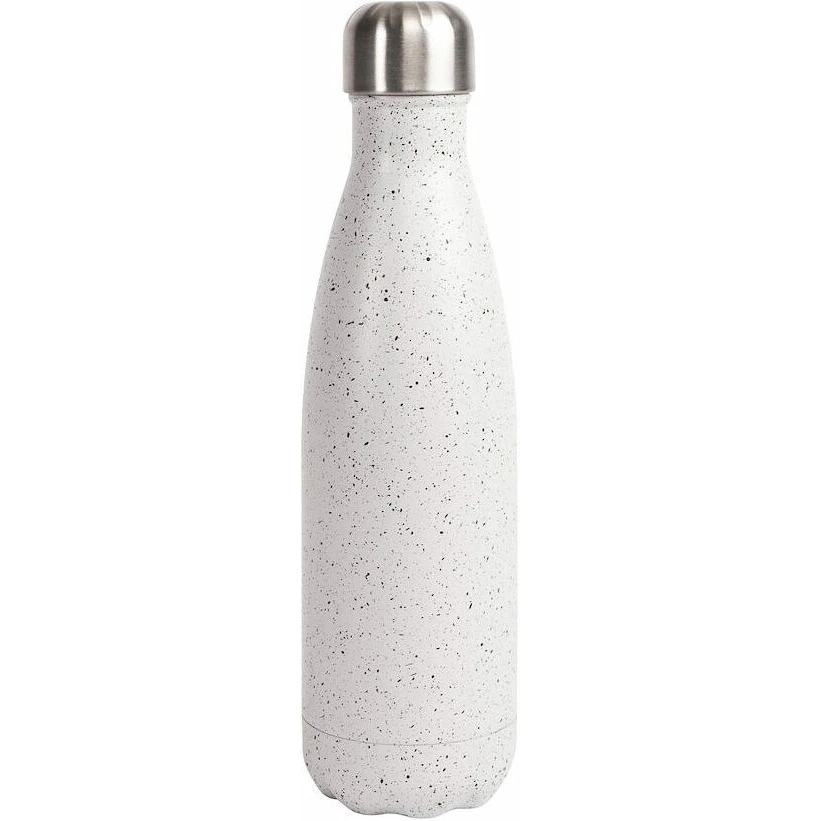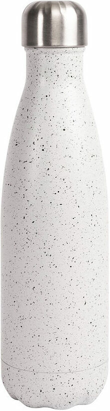 Vår bästsäljande stålflaska i vitt med ett svart stänkmönster. En klassisk och hållbar flaska med modern design. Stålflaskan har unika egenskaper. Den håller kylan i upp till 24 timmar, och värme i 12 timmar.