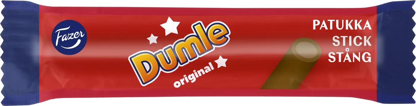 Dumle är en klassiker som aldrig vill växa upp. Här i en god godisstång med smak av choklad och Dumles goda toffee. Perfekt som en liten gåva till dig själv för att törsta suget efter något gott. Tillverkad med naturliga färger och fri från gelatin.