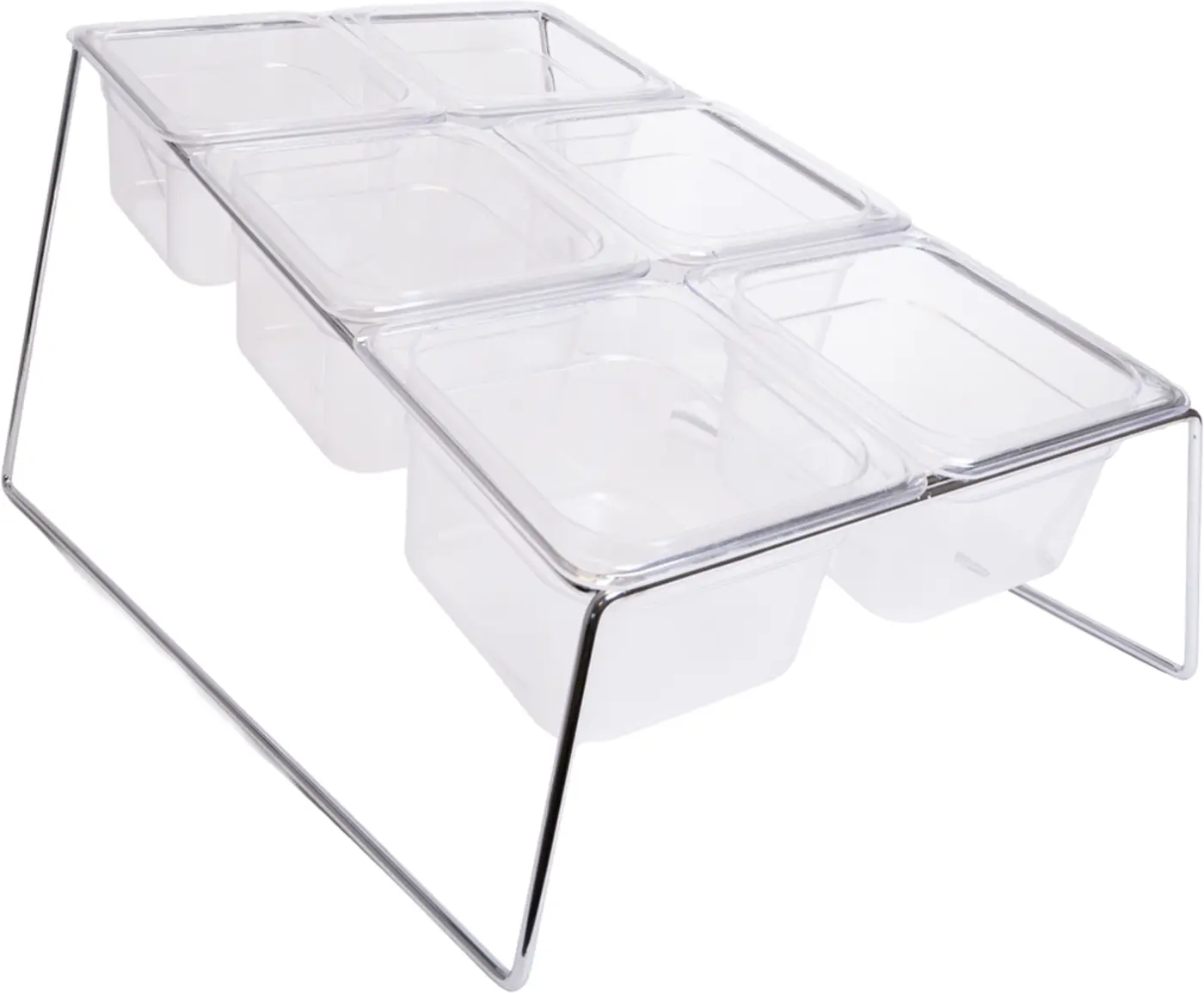 Praktiskt och stilrent strösselställ för servering av upp till sex olika strösselsorter. Perfekt för glassbarer, caféer och dessertstationer där du vill erbjuda ett varierat utbud av toppings på ett överskådligt och hygieniskt sätt.