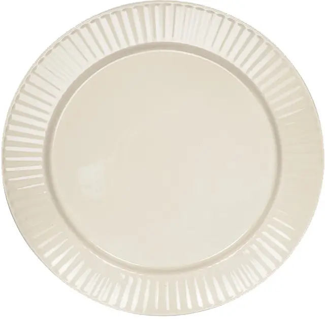Tallrik i stengods med karakteristisk relief i en vacker naturinspirerad färg. Den mjuka beige tonen harmoniserar fint med seriens övriga färger men står också starkt på egen hand. Det vackra mönstret och linjerna i serien skapar en känsla av trygghet och hemtrevnad. Tallriken är en del av Coffee & More-serien, skapad i samarbete med designern Margot Barolo för Sagaform. Tål maskindisk och är livsmedelssäker.