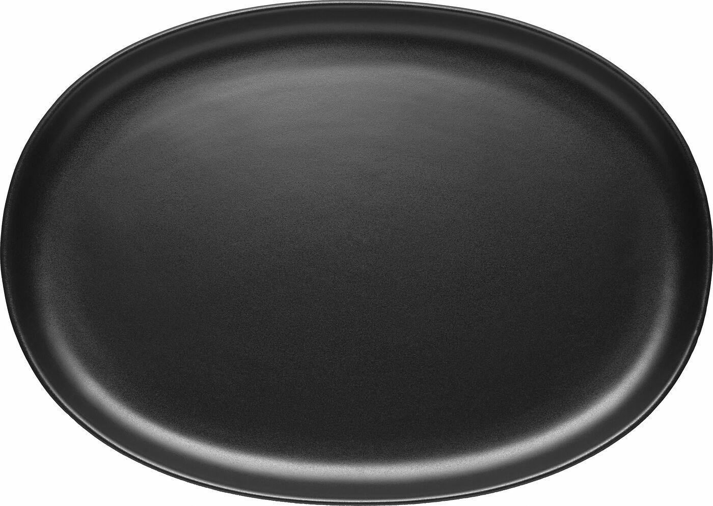 Oval tallrik av svart stengods i enkelt och elegant uttryck som passar den avslappnade nordiska livsstilen. Tallriken tål daglig användning med både maskindisk, frys, ugn och mikrovågsugn. Tallriken kan även användas som serveringsfat.