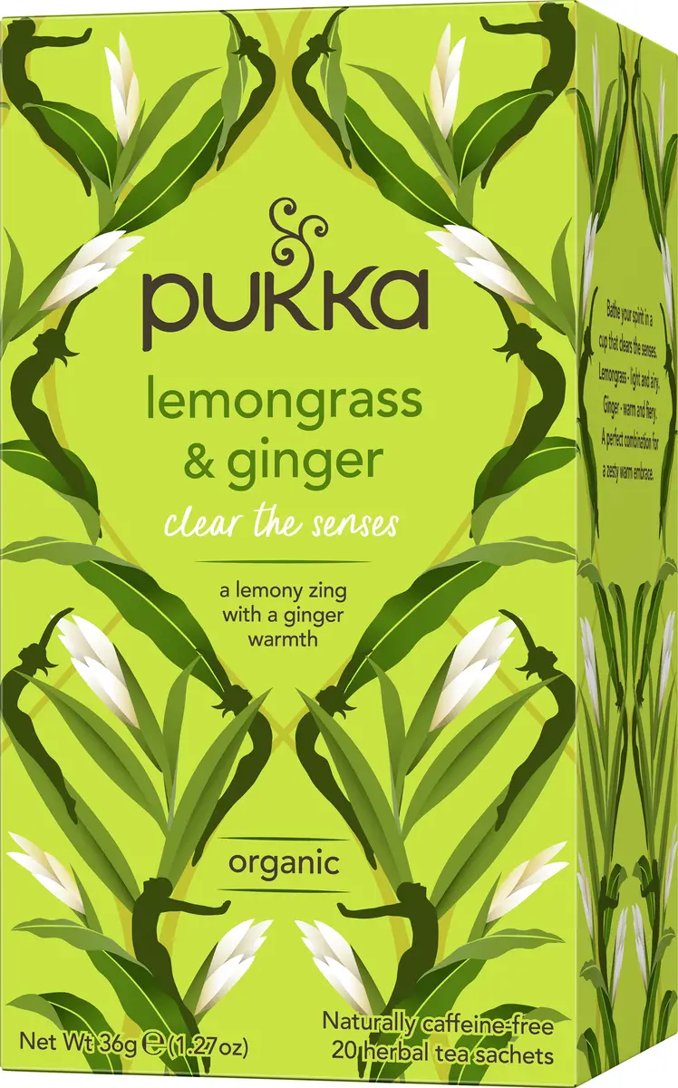 Ett te som kombinerar det bästa av två världar, friskt citrongräs och kryddig ingefära. Naturligt fritt från koffein. Ekologisk, Fair for life samt Fairwild.