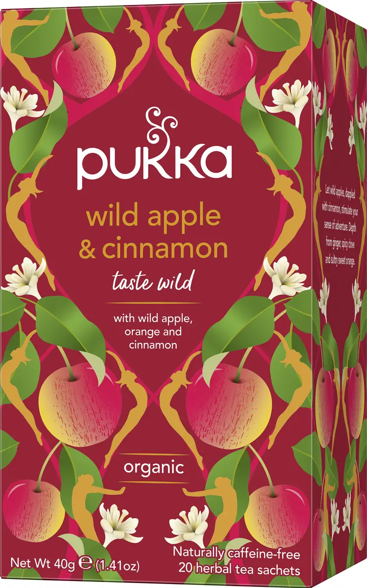 Ett te fullproppat med smak! Luta dig tillbaka och insup de ljuvliga smakerna från friska äpplen och kryddig kanel. Naturligt koffeinfri. Ekologisk, Fair for life samt Fairwild.