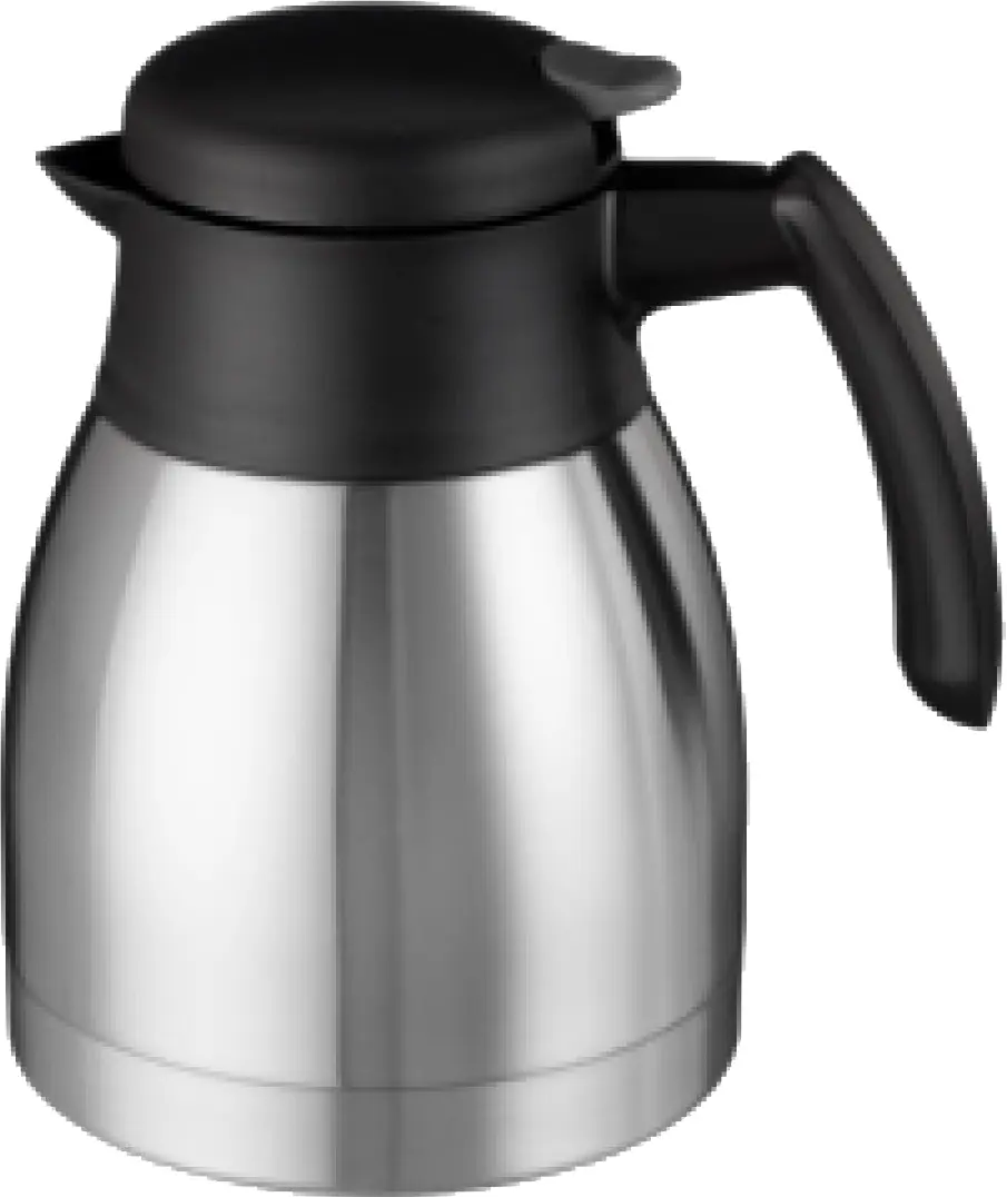 Dubbelmantlad med isolering, med skruvlock och tryckknapp för servering.