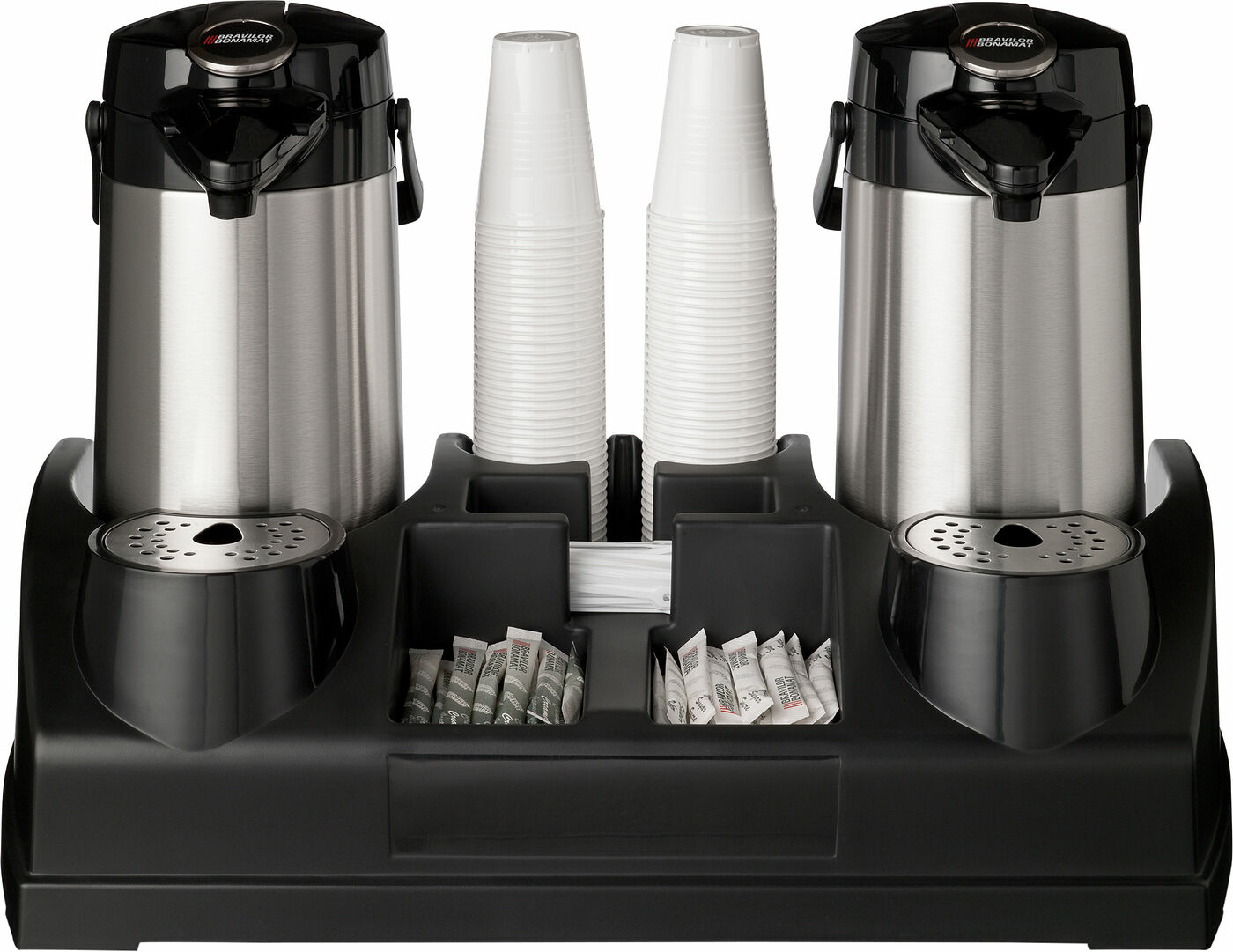 Med plats för två pumptermosar med tillbehör och ingredienser. Detta gör att du kan servera färskt kaffe eller te när som helst. (Termoskannor ingår ej)