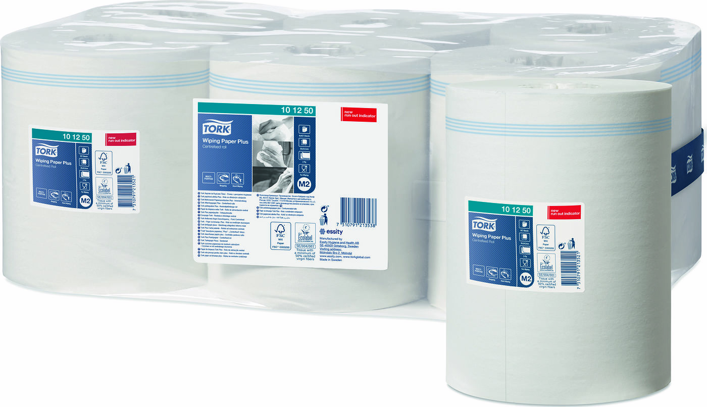 Tork Avtorkningspapper Plus är ett 2-lagerspapper som passar perfekt för att torka upp vätskor och torka händerna. Pappret passar i Tork® Dispenser Centrummatad – en mångsidig lösning med hög kapacitet för arbetsmiljöer där det är nödvändigt att kunna torka av både händer och ytor.