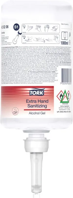Tork Extra Handdesinfektion Alkoholgel är ett effektivt handdesinfektionsmedel. Den är idealisk för rengöring av händer när du inte har tillgång till vatten. Gelen gör det enkelt att blöta händerna utan att det droppar. Det lämnar inga klibbiga rester på huden även om den används frekvent. Den är oparfymerad och har återfuktande egenskaper som skyddar händerna.