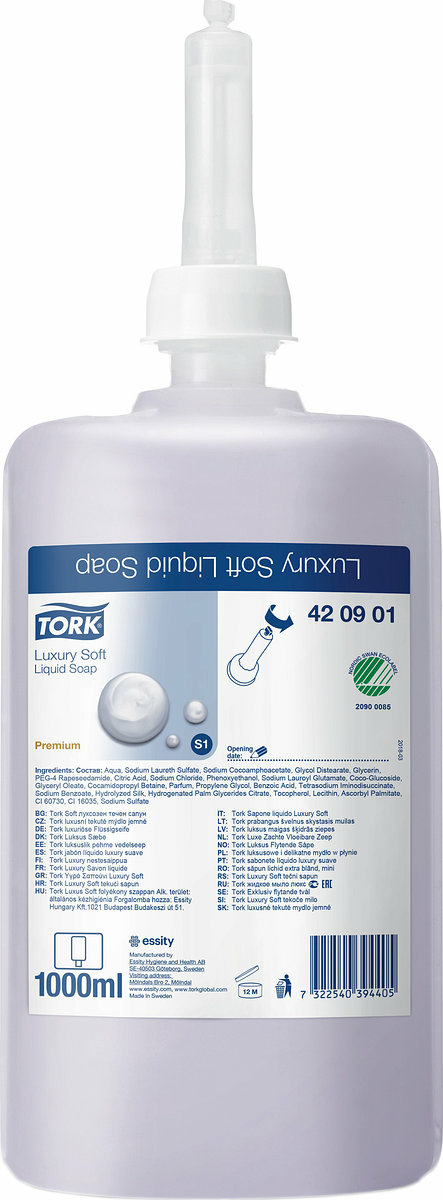Ge besökarna en extra känsla av lyx med Tork Luxury Flytande Tvål. En lyxigt doftande formula, berikad med naturligt magnoliaextrakt samt fuktgivande och närande lipidingredienser för en skön och krämig handtvätt. Passar med dispensrarna för Tork Flytande Tvål och Spraytvål som är Easy to use-certifierade och ger god handhygien till alla användare.