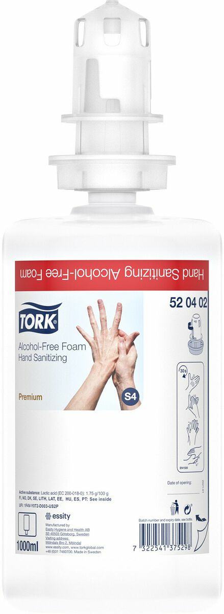 Tork Handdesinficerande Skum utan Alkohol med mjölksyra är det perfekta valet för handhygien när alkoholbaserade produkter inte är ett alternativ och vatten inte finns att tillgå. Produkten är lätt att transportera och hantera eftersom den inte har varningssymboler. Eftersom formulan innehåller 100 % växtbaserade ingredienser plus vatten samt är 100 % biologiskt nedbrytbar så utgör den ett hållbart val. Lämplig för alla Tork Skincare Dispensers (S4).