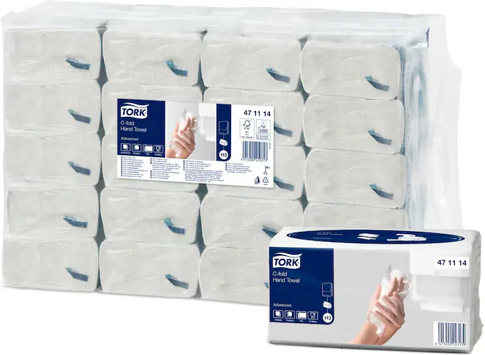 Tillgodose grundläggande handavtorkningsbehov med Tork C-fold Handduk i Advanced-kvalitet för miljöer där kostnad och prestanda är lika viktiga faktorer. Dessa handdukar passar i Tork Dispenser Singlefold/C-fold som är ett traditionellt system med handdukar i travar.