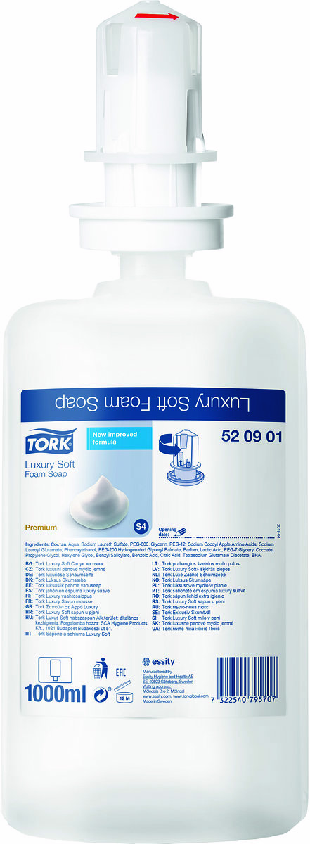 Skäm bort dina gäster med lite extra lyx med Tork Exklusiv Skumtvål. Denna tvål har milda ingredienser och är extra skonsam mot huden. Den unika doften har fräscha toppnoter av citrus och övergår sedan i en elegant blandning av ros, orkidé, magnolia och fresia för att avslutas med ett exklusivt inslag av vanilj, trä och mysk. Passar i Tork Dispenser Skumtvål som är enkel att använda och ger alla användare utmärkt handhygien.