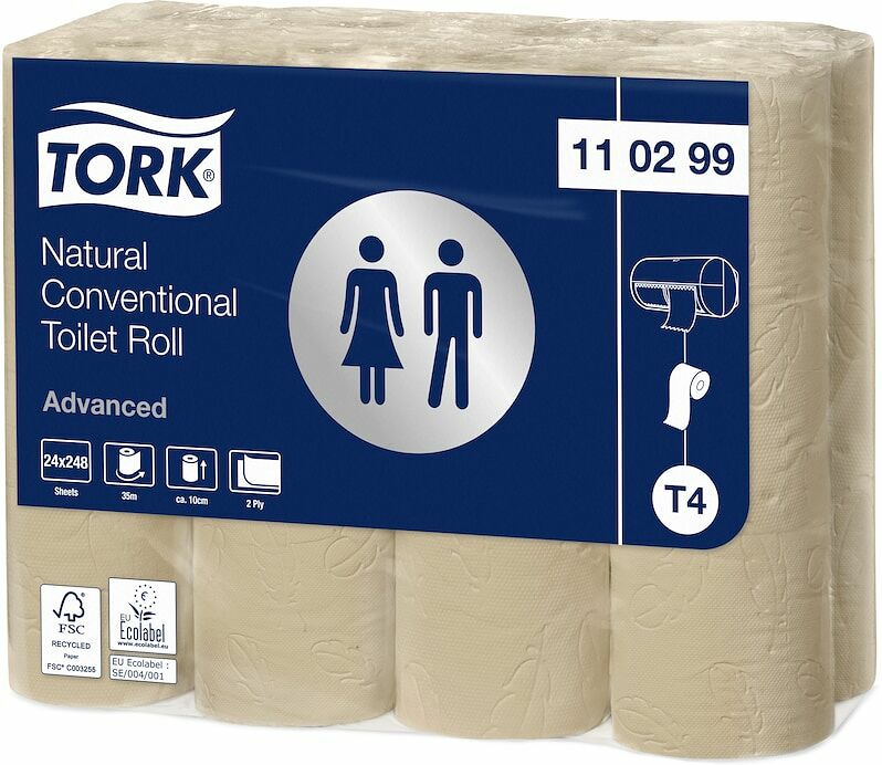 Ge gästerna samma komfort som hemma med extra långt toalettpapper i Advanced-kvalitet från Tork. Det här är ett kostnadseffektivt och funktionellt toalettpapper – perfekt för toalettutrymmen med låg besöksfrekvens. Pappret tillverkas av 100 % återvunna fibrer.