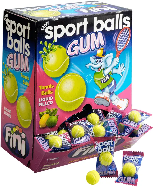 Jättefina roliga tuggummi i form av en tennisboll med flytande citron fyllning.