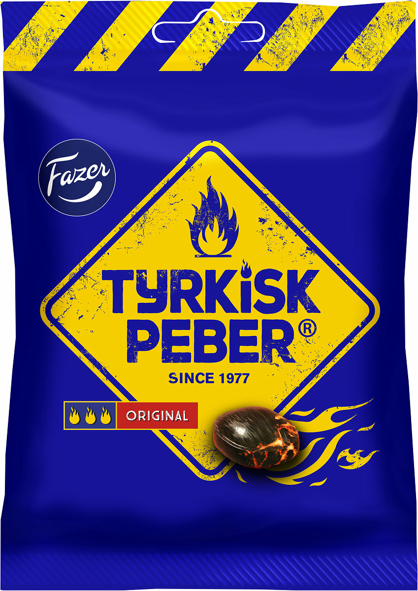 Tyrkisk peber är det självklara valet för alla salmiakälskare sedan 1977. Tyrkisk peber original består av ett hårt salmiakskal som döljer en het kärna med salmiakpulver. Denna heta salmiak är en av Fazers mest klassiska och älskade varumärken även internationellt.