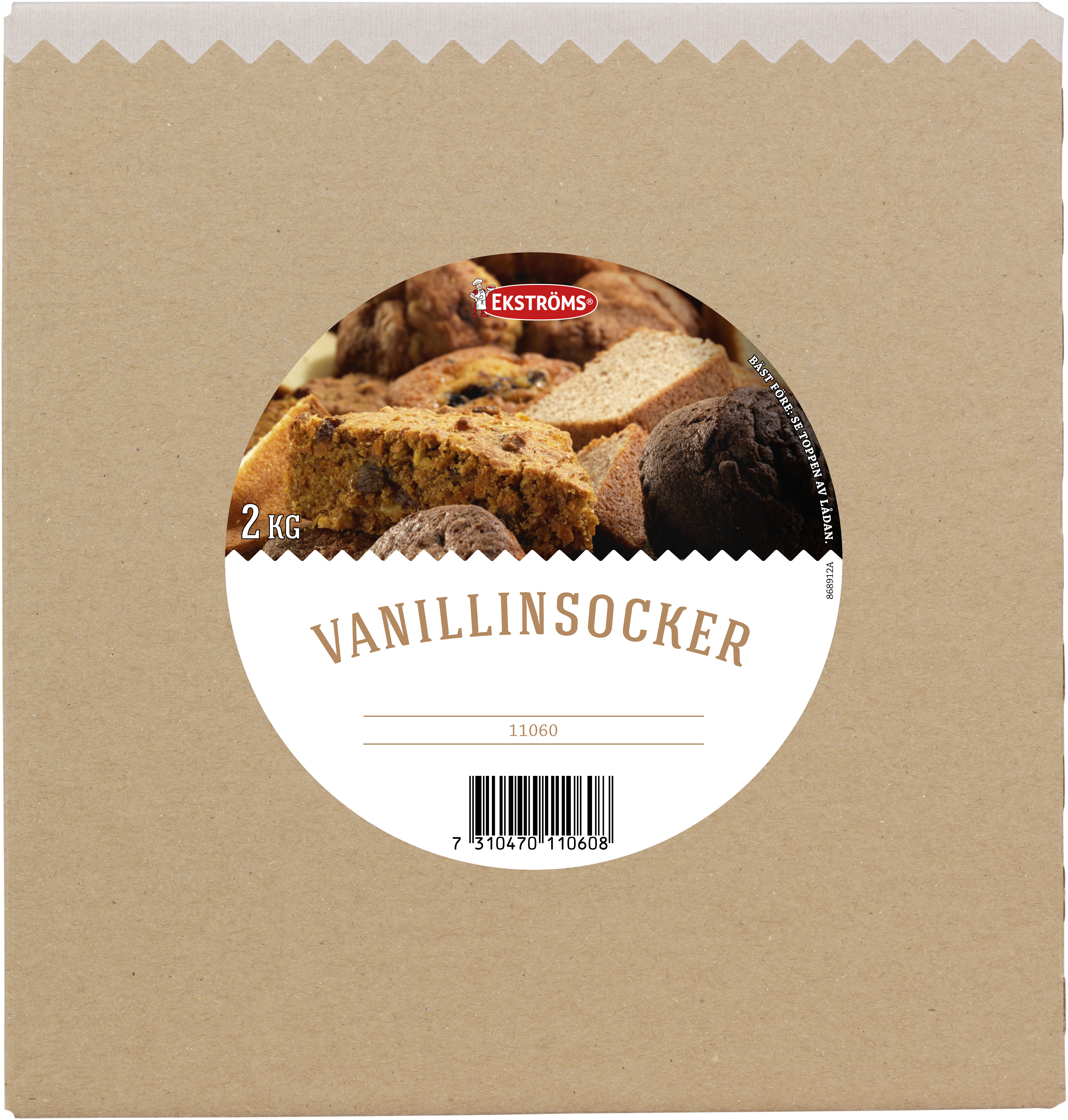 Ekströms Vanillinsocker i en praktisk förpackning på 2 kg (två påsar à 1 kg).