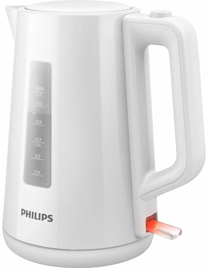 Den nya Philips-vattenkokaren i plast med en kapacitet på 1,7 liter, automatisk locköppning och lampindikator gör att du enkelt kan fixa till din favoritdryck på nolltid. Den sladdlösa vattenkokaren står på en 360° vridbar basplatta för enkla lyft och enkla byten. En elegant indikeringslampa på strömknappen tänds när vattenkokaren slås på. Vattennivån är enkel att avläsa med en indikator som sitter på vattenkokarens ena sida. Ett trycklock öppnas mjukt med en knapptryckning, så att du kan undvika ångkontakt. Den stora öppningen förenklar rengöring. Sladden kan lindas under bottenplattan, så att den har rätt längd för alla kök och kan förvaras enkelt.