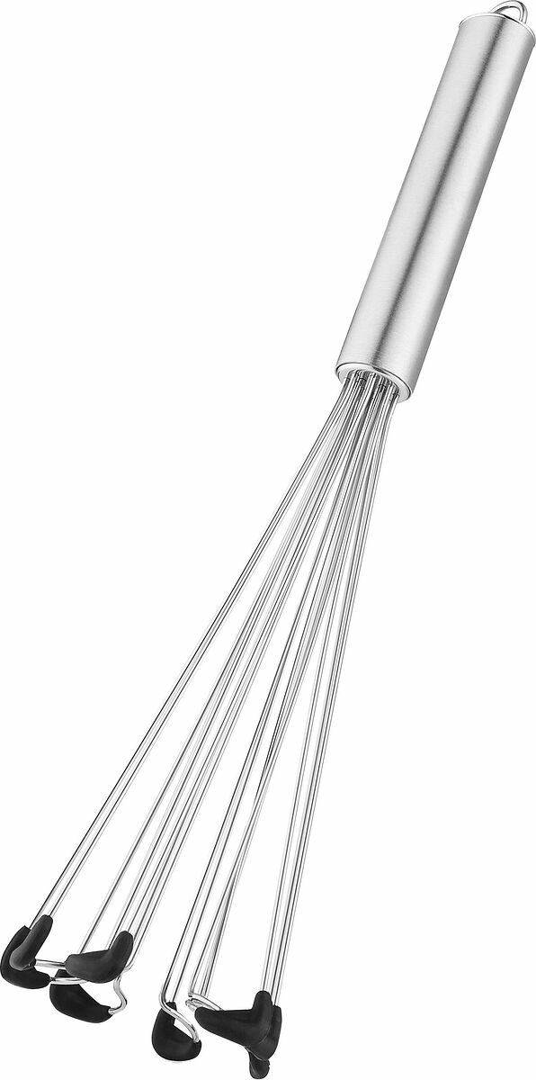 Vispen har ändar i silikon och kan därför användas i kastruller och stekpannor med alla typer av beläggningar.