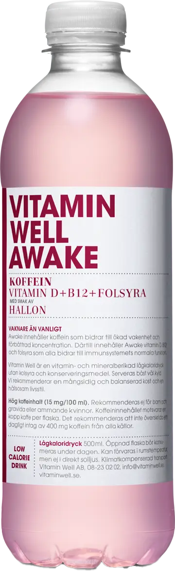 Awake innehåller koffein som bidrar till ökad vakenhet och förbättrad koncentration. Därtill innehåller Awake vitamin D, B12 och folsyra som alla bidrar till immunsystemets normala funktion.