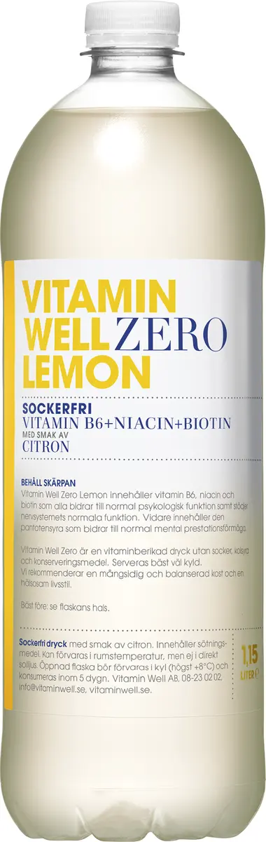 Zero Lemon är icke-kolsyrad, sockerfri och berikad med noggrant utvalda vitaminer, inklusive B6, niacin och biotin, som bidrar till normal psykisk funktion och ett välfungerande nervsystem.