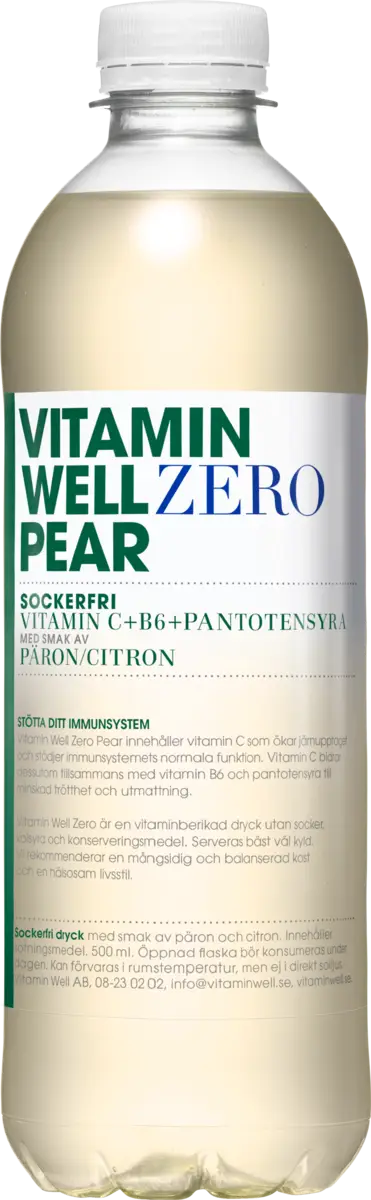 Vitamin Well Zero Pear kombinerar krispig päron och frisk citron i en lätt törstsläckare som stödjer ditt immunsystem. Med vitamin C som förbättrar järnupptaget och pantotensyra och B6 som minskar trötthet, håller den dig pigg och fräsch hela dagen.
