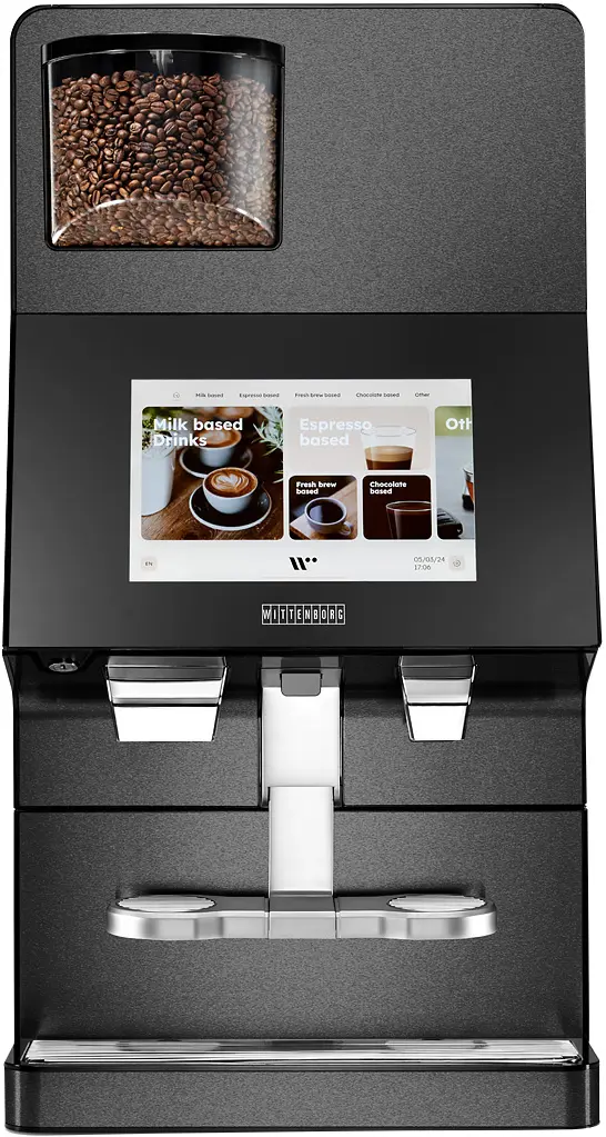 Upptäck W100, den senaste innovationen från Wittenborg, framtagen för att leverera en förstklassig kaffeupplevelse i alla miljöer. Utvecklad för att kombinera pålitlighet, hög kvalitet och intuitiv enkelhet säkerställer W100 att varje kopp uppfyller de högsta kraven på smak och njutning.