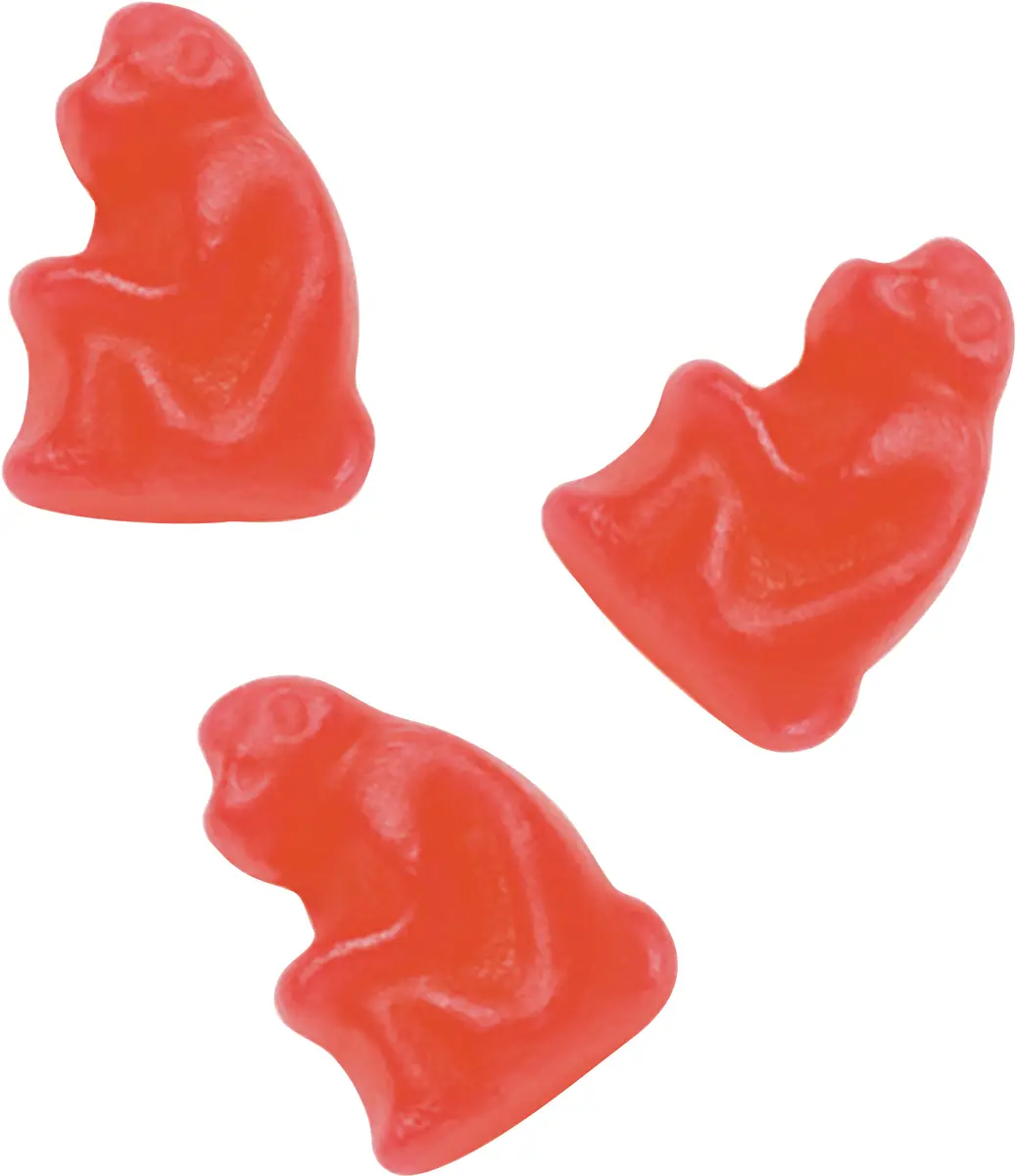 socker/sukker, glukossirap, gelatin, stärkelse/stivelse, syra (E270), vegetabiliska oljor (kokos, raps), naturlig arom, ytbehandlings-/overfladebehandlingsmiddel (karnaubavax/voks), färgämnen/farvestoffer (E120, E160a).