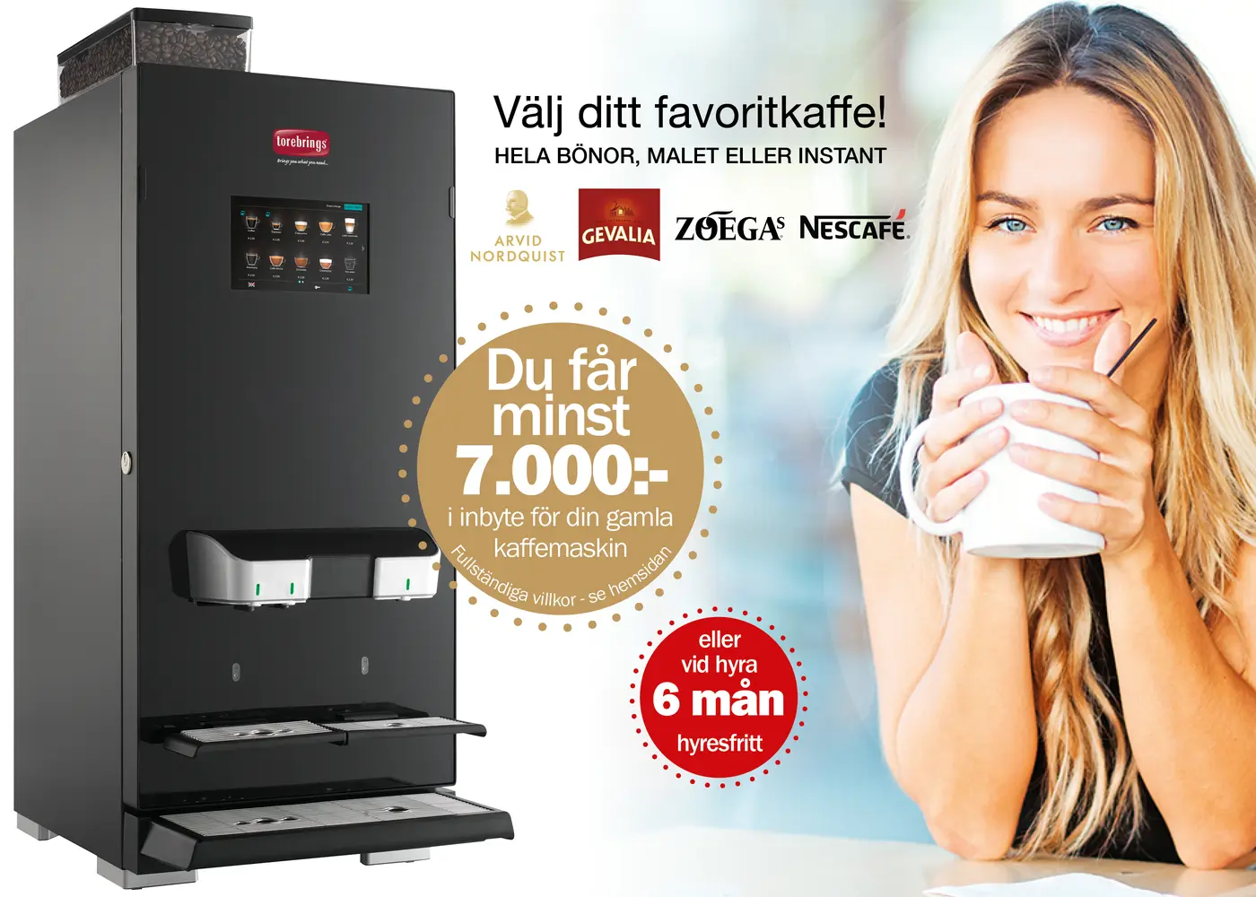 *Kan ej kombineras med andra erbjudanden på kaffemaskiner. Pris från 746:-/mån (efter att inbytesrabatt är avdragen). Gäller tillsvidare under