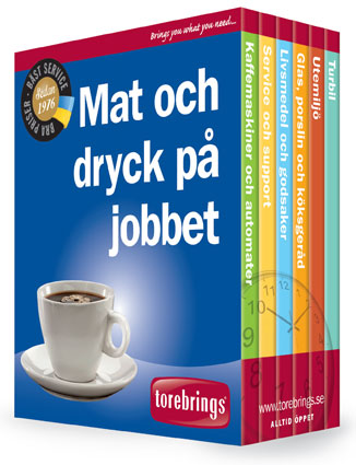 Torebrings erbjuder helheten när det gäller mat och dryck på arbetsplatsen: Kaffeautomater, vattenautomater, läskautomater och varuautomater allt för gott kaffe och fika på jobbet. Koppar, glas, assietter, tallrikar och bestick, lunch, mellanmål och godsaker. Dessutom allt som behövs av tork-, städ-, och hygienprodukter.
